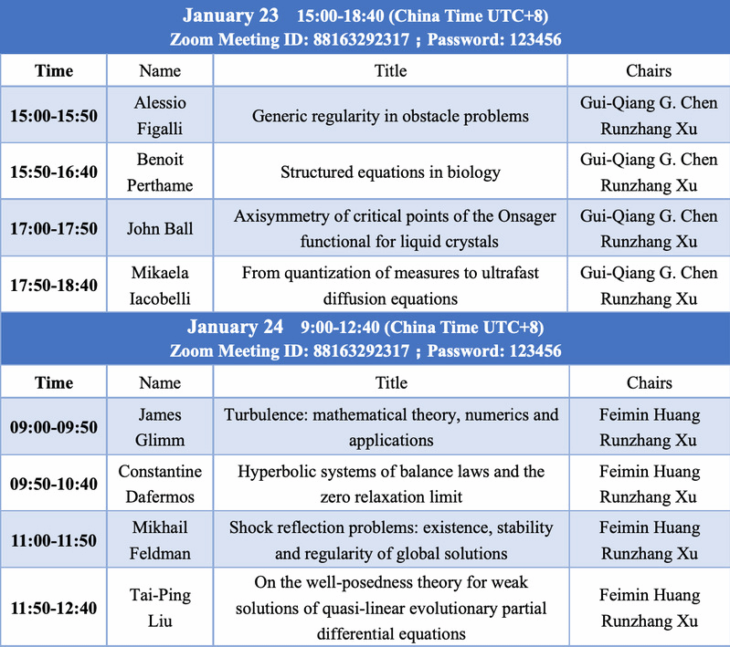 Thepre-conferencewill hold eight academic lectures from January 23-24, 2021. Please refer to the following table for the specific lecture schedule and link below for entering the meeting.