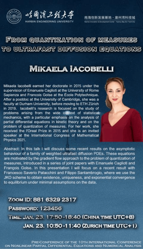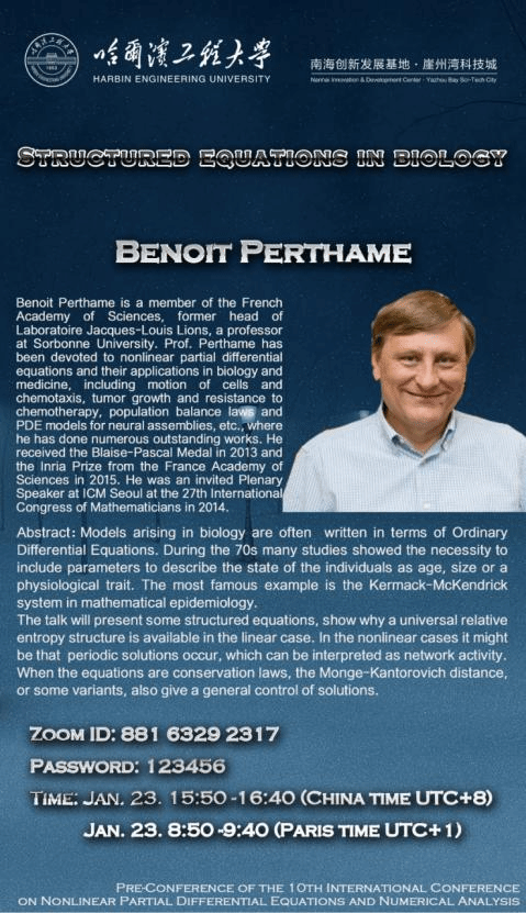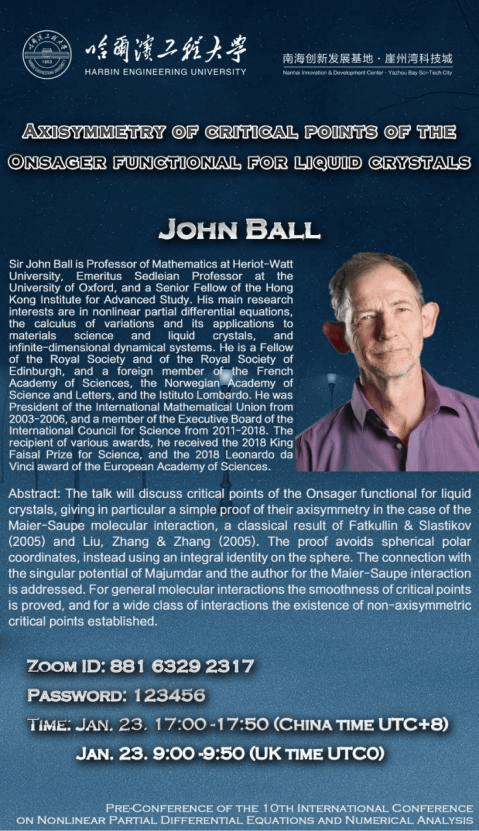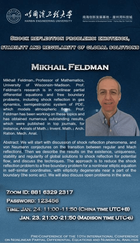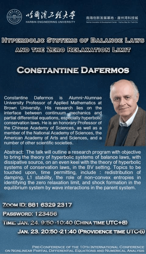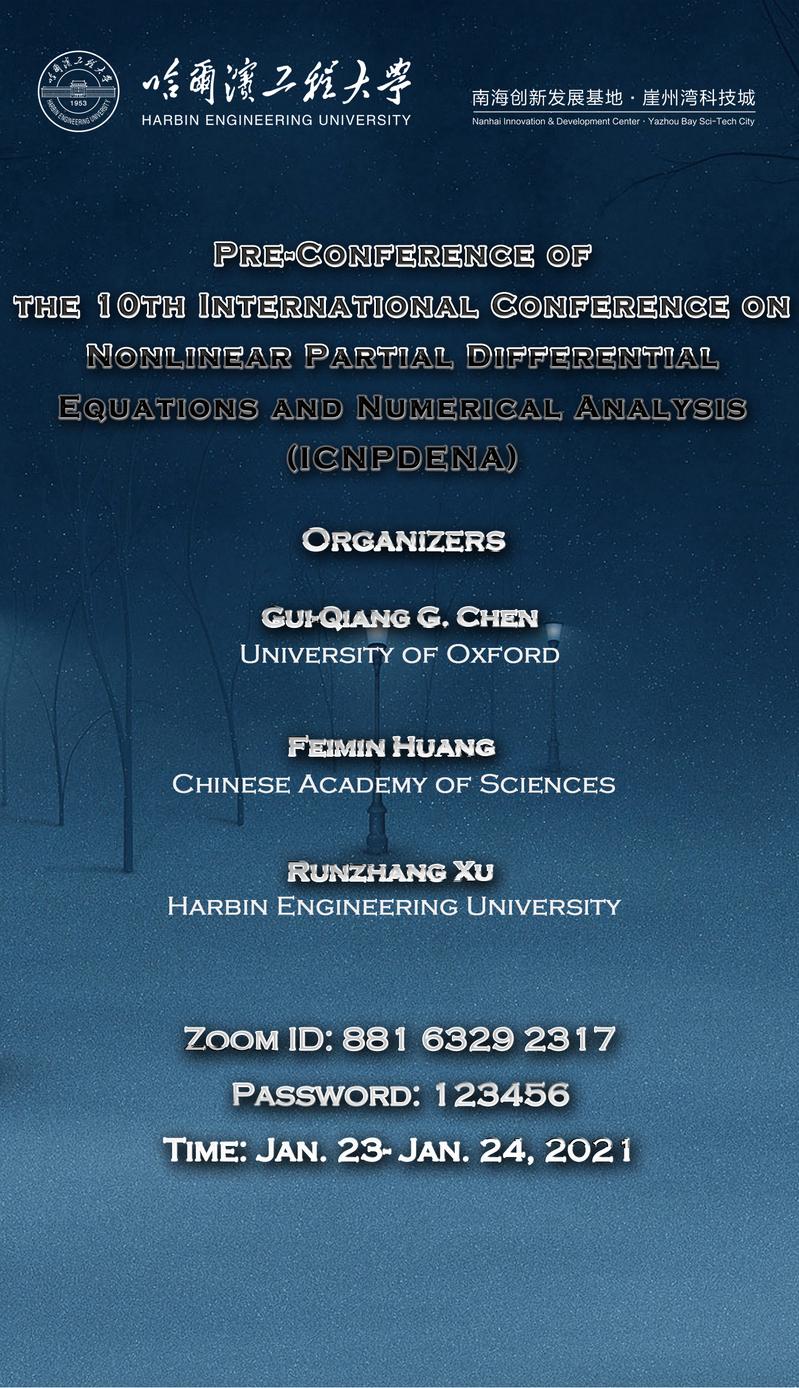 The pre-conference of the 10th-ICNPDENAis initiated by the Organizing Committee of the International Conference on Nonlinear Partial Differential Equations and Numerical Analysis, which will be held on January 23-24, 2021, at the Nanhai Innovation and Development Center of Harbin Engineering University, Yazhou Bay Sci-Tech City, Hainan Province China (Offline), and via ZOOM (Online).
