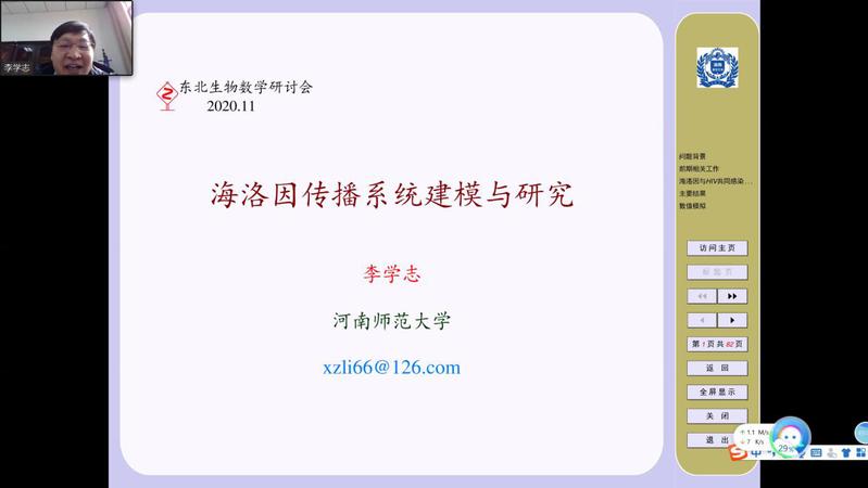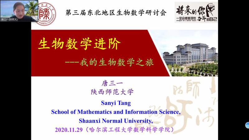 2020年11月28-29日永乐高60net承办了第三届东北地区生物数学研讨会,会议由生物数学东北联盟主办,由中国数学会生物数学专业委员会、国家天元数学东北中心和东北师范大学协办。