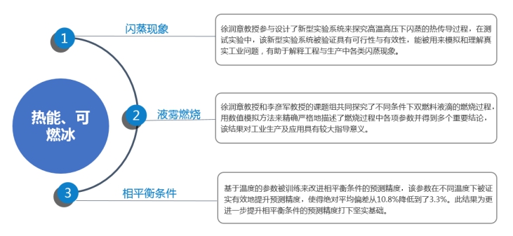 团队与我校动力与能源工程学院课题组深入合作,涉及可燃冰开采机理研究和技术攻关,二相流的模型建立与数值模拟,液滴燃烧技术和数值模拟,多种水合物的相平衡计算,闪蒸技术与工程应用等。团队负责人徐润章教授先后访问普林斯顿大学、利兹大学、伯明翰大学进行相关交叉学科的合作研究,并作为我国“可燃冰咨询委员会”唯一的数学学科成员。