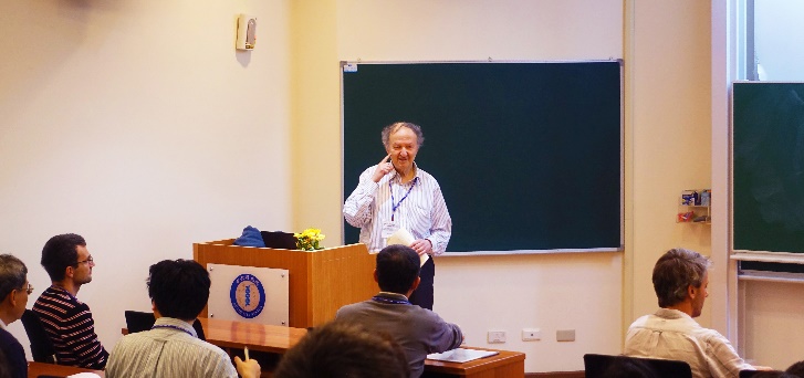 顶点算子代数理论与传统的代数理论有很大的不同,反映出弦论和“moonshine 猜想”的非经典性。利用顶点算子理论,人们能够提出并解决许多以前被认为是属于不相关领域中的问题。在过去的二十年里,顶点算子代数理论得到了空前的发展,这应部分归功于其与众多数学分支所产生的密切联系。团队中,穆强教授在这一领域做出了重要的工作,并且与罗格斯大学的李海生教授建立了长期的合作关系。 3.广义Kac-Moody代数 为了证明月光猜想,博尔切兹引入了广义Kac-Moody代数。这是一类范围更广的无限维李代数,其特点是允许有虚的单根出现在单根集之中,而这一点极大地丰富了李理论的内容。本团队主要研究量子化的广义Kac-Moody代数及其表示理论、典范基和晶体基理论、范畴化问题以及几何实现等问题。在这一领域,我们与国际知名代数学家、国际数学家大会(ICM)45分钟报告人Seok-Jin Kang教授合作,取得了较为丰硕的研究成果。