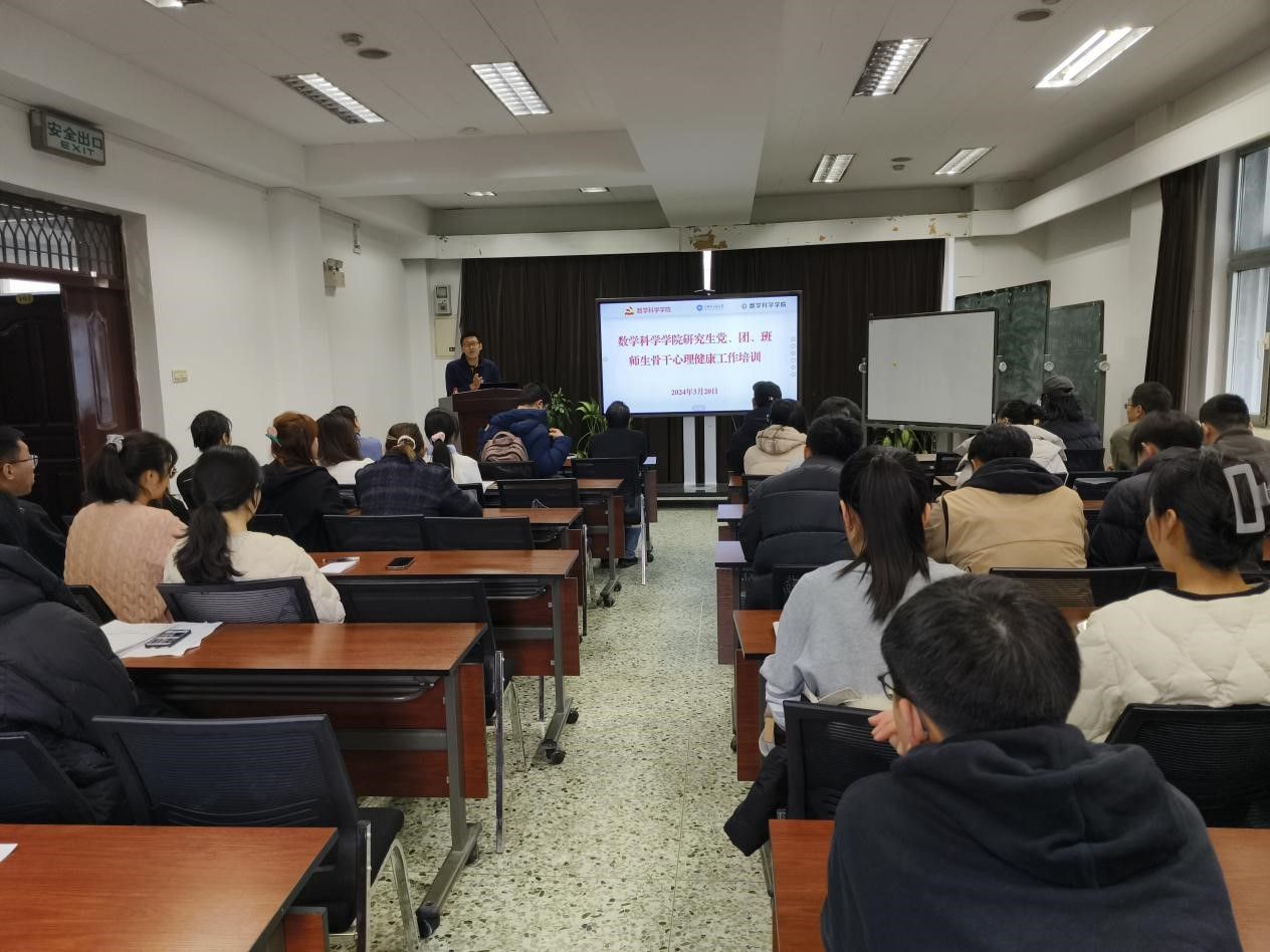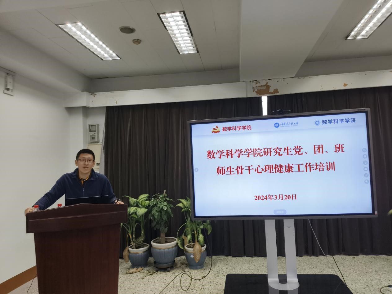 为加强学院研究生培养质量,提高研究生骨干心理健康工作的能力水平,永乐高60net于2024年3月20日在逸夫馆401会议室组织研究生骨干开展心理健康工作培训,学院副院长张晓威、研究生辅导员、研究生党支部书记以及研究生党、团、班学生骨干30余人参加培训,由学校本科生院学生发展指导中心心理健康教研室葛喜平教授担任主讲人,培训由学院辅导员刘东平主持。