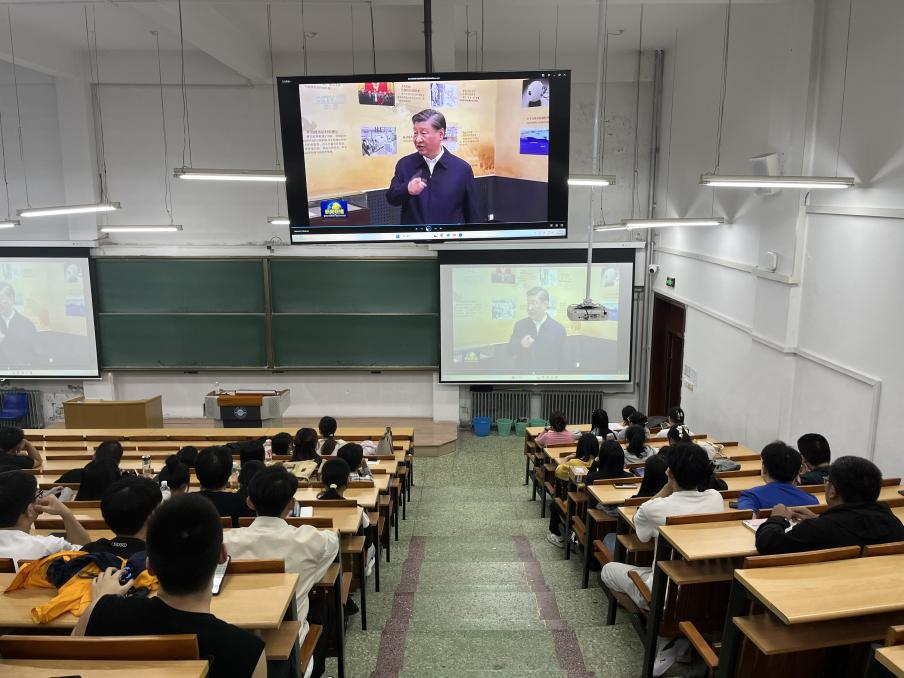 刘东平首先组织观看了2023年9月7日习近平总书记视察学校央视新闻,带领全体研究生新生重温了总书记重要讲话精神。